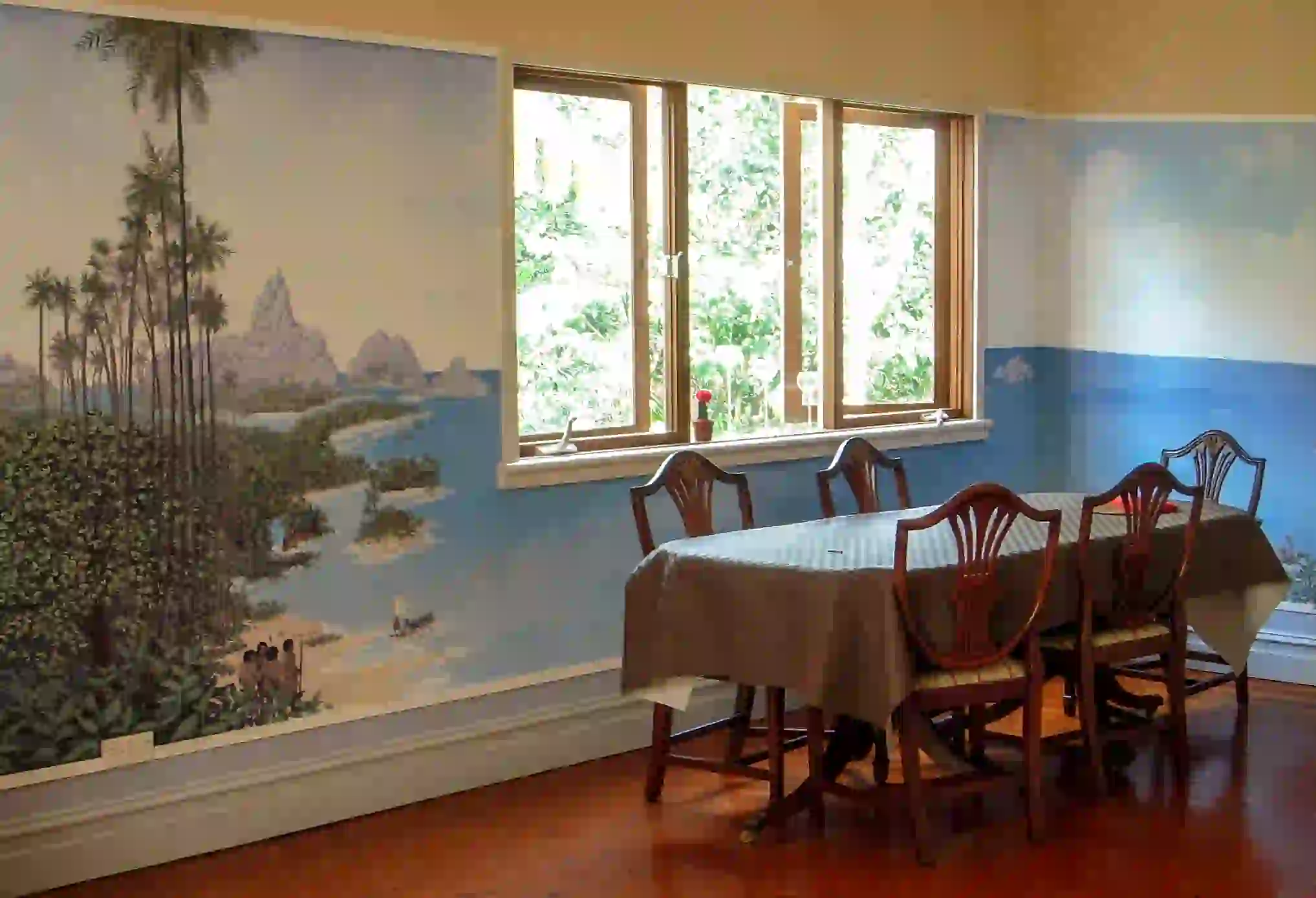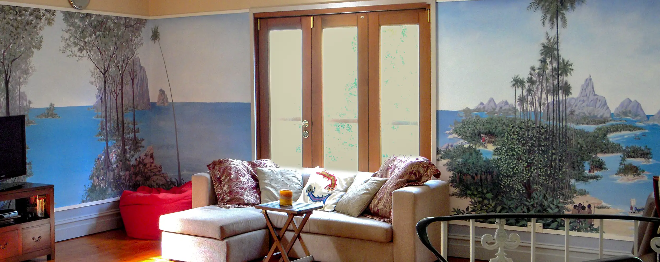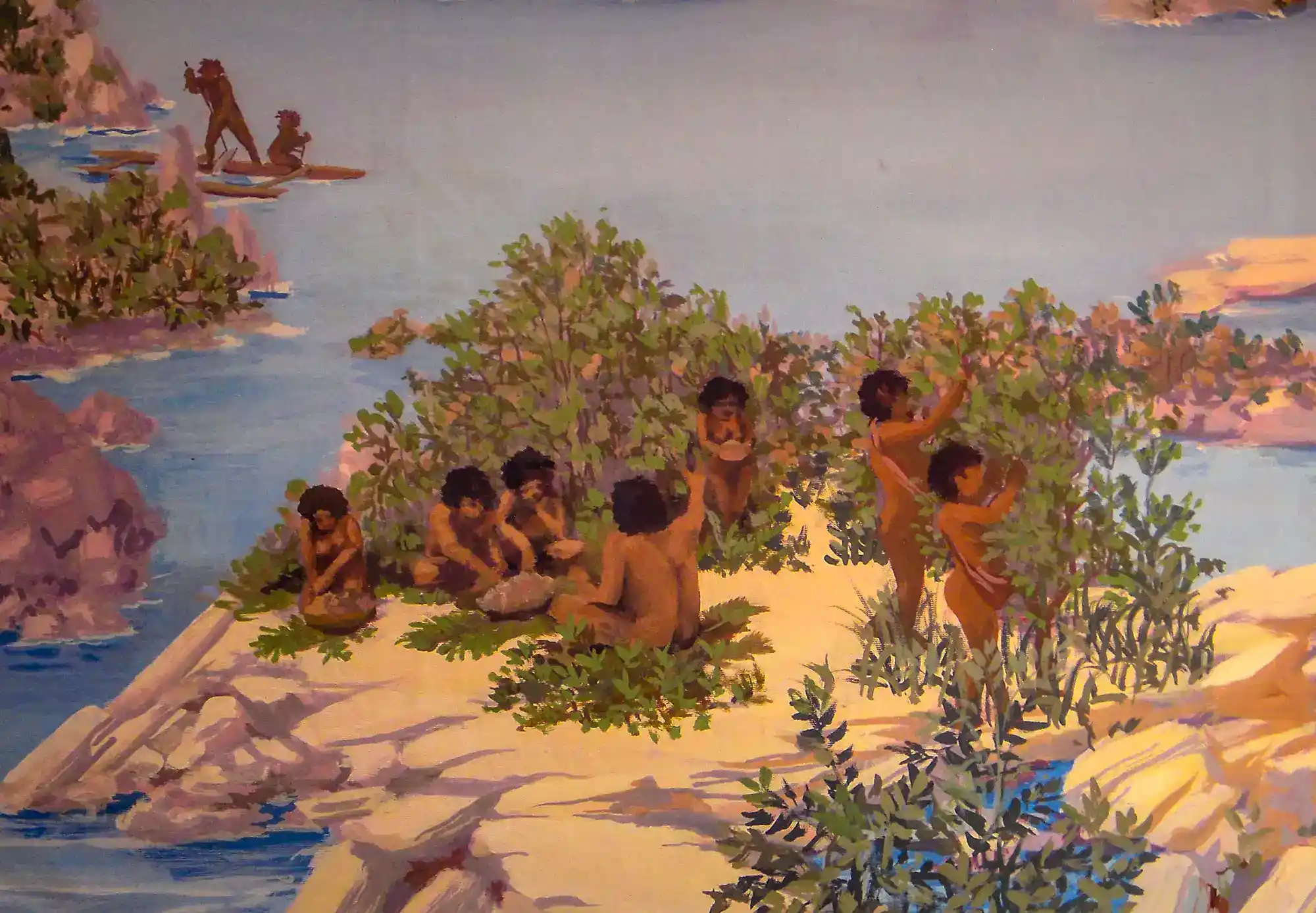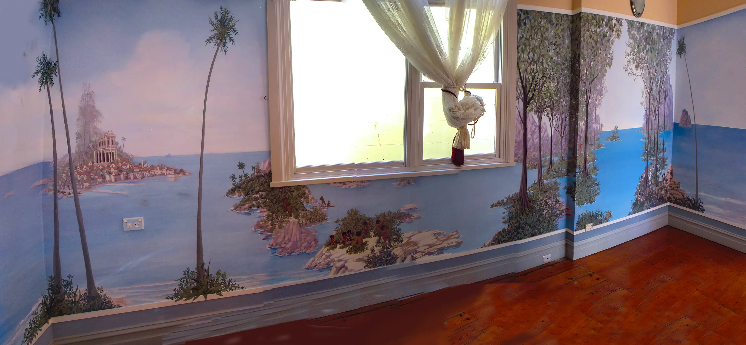 The Bougainville mural is an historical visual narrative inspired by French navigator BOUGAINVILLE and his book relating his circumnavigation, in the Pacific Ocean in the 18th century with a stopover at Tahiti ... then Sumatra ... finally reaching Batavia.
